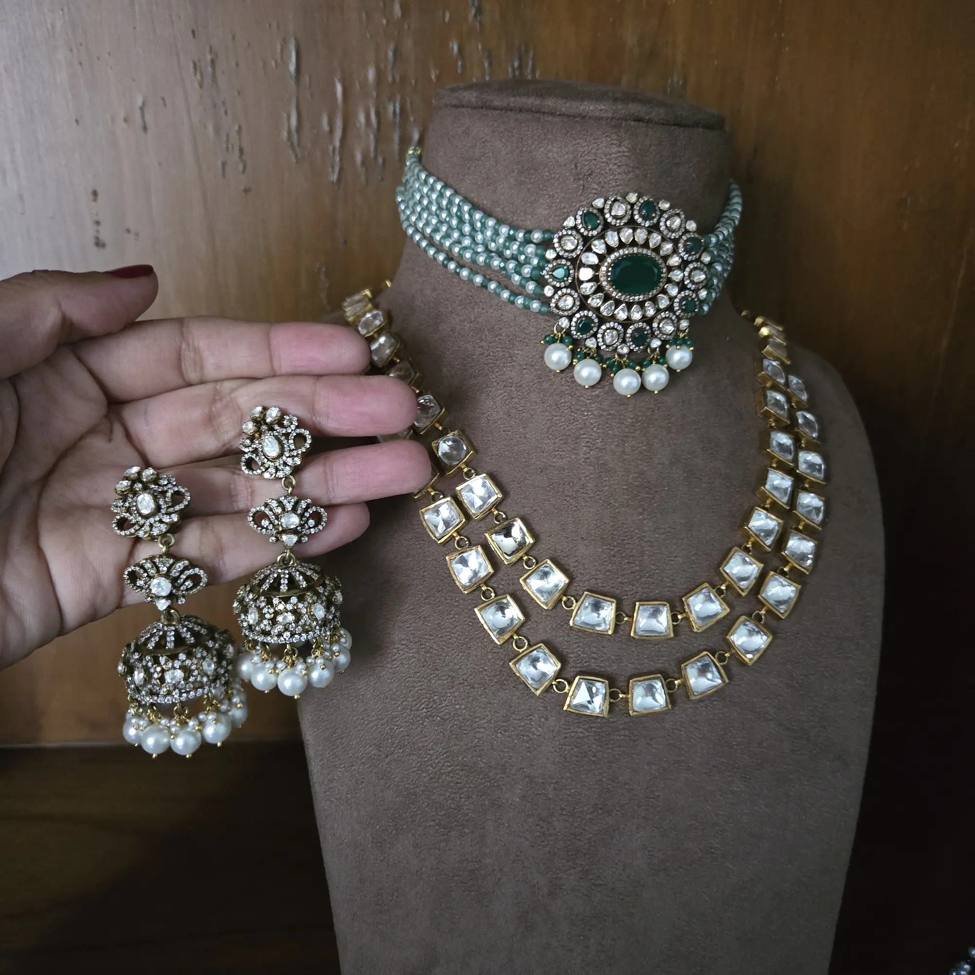 Emerald choker with kundan 2 lines